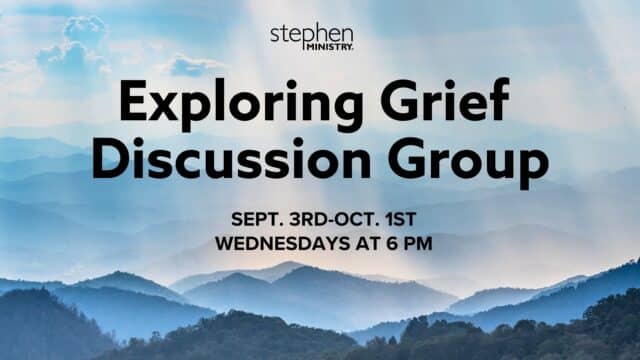 The Stephen Ministry Program of Middletown Christian Church invites you to become part of the Exploring Grief Discussion Group, which will be held each Wednesday evening from 6-7:30 p.m. beginning September 3 through October 1 in Room 125.