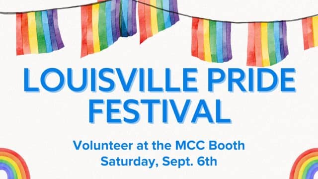 Middletown Christian Church will have a booth at the Louisville Pride Festival on Saturday, Sept. 6th from 11 AM-5 PM. Volunteers will staff the booth for one hour time slots. Volunteers are a friendly, welcoming presence for festival attendees, providing info about Middletown and giving out freebies. Festival takes place on Bardstown Rd.
