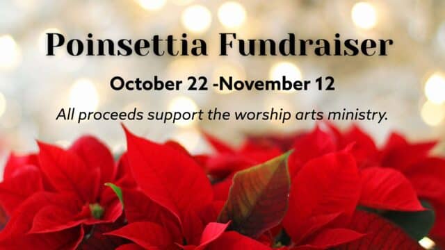 Celebrate the beauty of the season and honor someone special by purchasing a poinsettia as part of our Poinsettia Fundraiser! Each poinsettia will help decorate our sanctuary for the Christmas season and support the ongoing work of our Worship Arts Ministry.