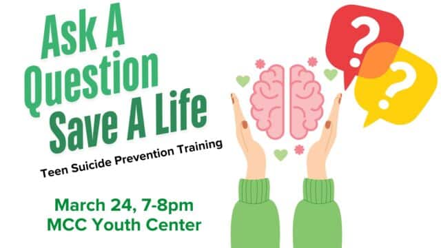 Teens are struggling with their mental health now more than ever. So how can we help? And how do we recognize the signs of a crisis? Parents, guardians, and anyone who works with teens are invited to attend our upcoming free Teen Suicide Prevention Training on March 24th at 7 PM.